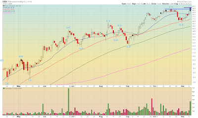 BKX - Weakest sector is the banking index. Forming a bear flag. The market will have difficulty if the financials do not rally. Pretty obvious, right? Watch them carefully.